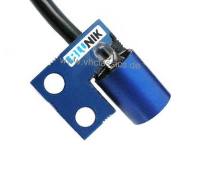 Dieser Sensor ist einsetzbar für den Blunik II. Der Geber wird jeweils an einem nicht angetriebene Rad verbaut um Schlupf zu vermeiden. Für den Blunik II werden zwei dieser Sensoren (rechts/links) verbaut. Die Sensoren arbeiten mit Magneten als Abnehmern/Gegenstücken. Arbeitsluftspalt ca. 10mm.
